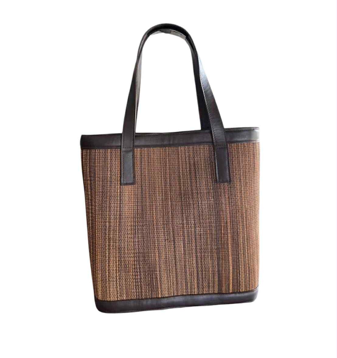กระเป๋าทรงคลาสสิกที่ทอจากเส้นใยตาลธรรมชาติ ผสานกับขอบหนังเทียมสีดำคุณภาพสูง โครงทรงเรียบหรู เหมาะสำหรับใช้ได้ทั้งวันทำงานและวันสบายๆ จุของได้เยอะ แข็งแรง และเป็นมิตรต่อสิ่งแวดล้อม